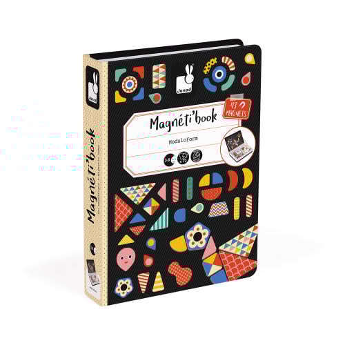 Magnetic educational game in cardboard on the tangram theme. Composed of 43 magnets and 30 cards. Once the book is opened, the aim is to make on the stage the same tangram shape as indicated on the card thanks to the magnets. This product is made of FSC® -certified and other controlled material.