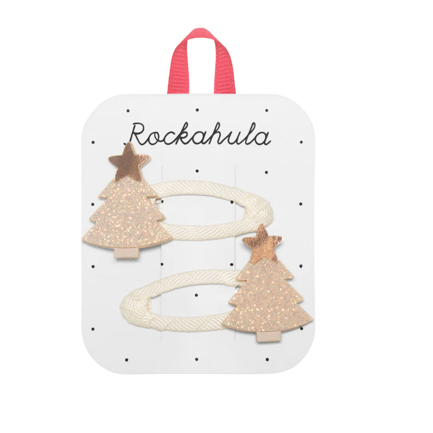 Glisten your way through the Christmas season in these sweet Christmas tree clips! In shimmering pink glitter, with PU star toppers, each tree is secured to an ivory ribbon wrapped snap clips.