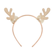 The sweetest headband to add a little festive shimmer to your Christmas! These pale pink glitter reindeer ears are adorned with gold tulle bows on each side. They are set securely onto a rose gold PU-covered band, which is designed to provide a comfortable fit for little heads.
