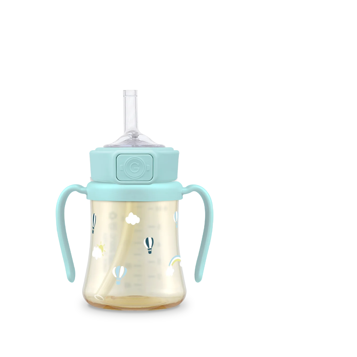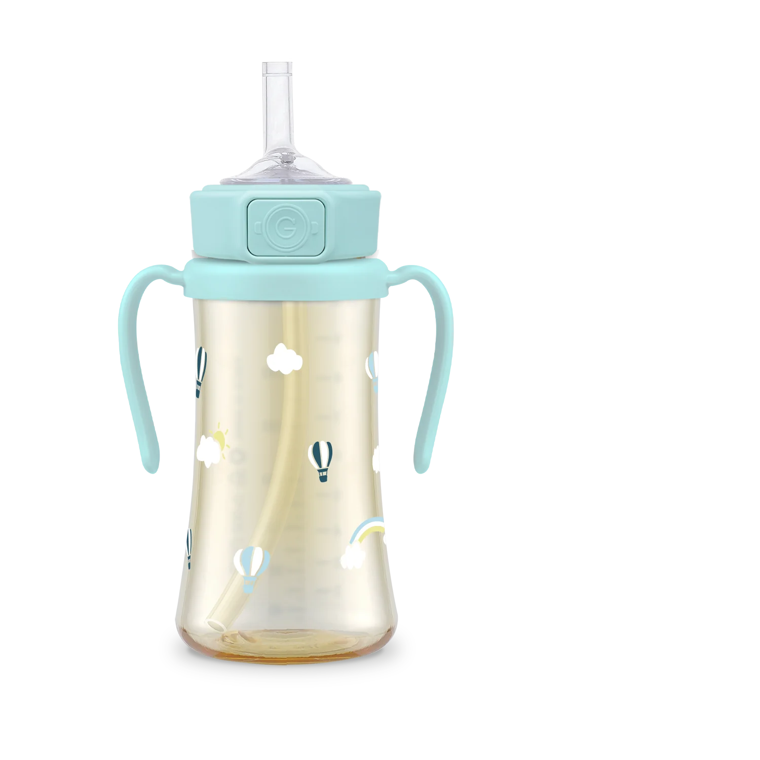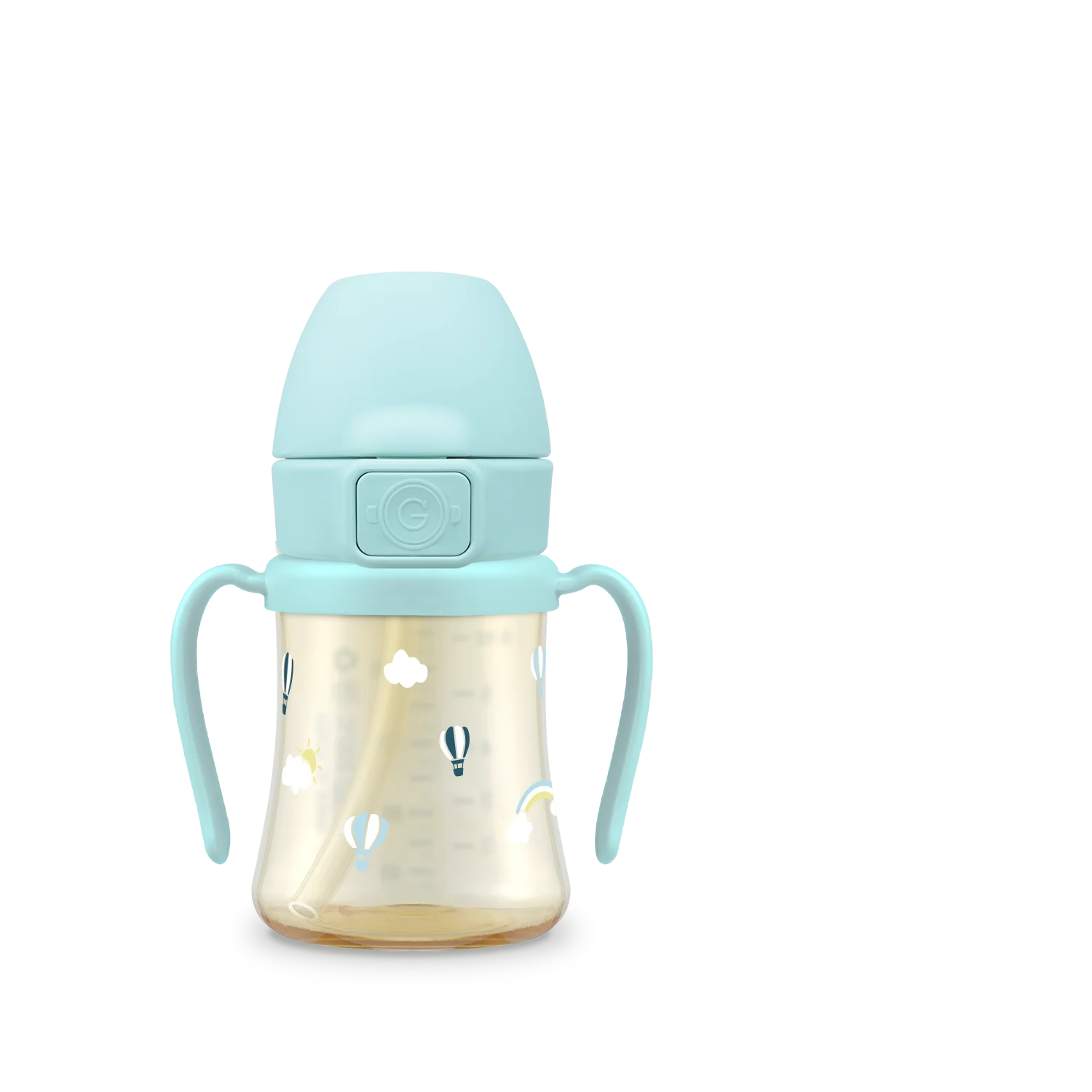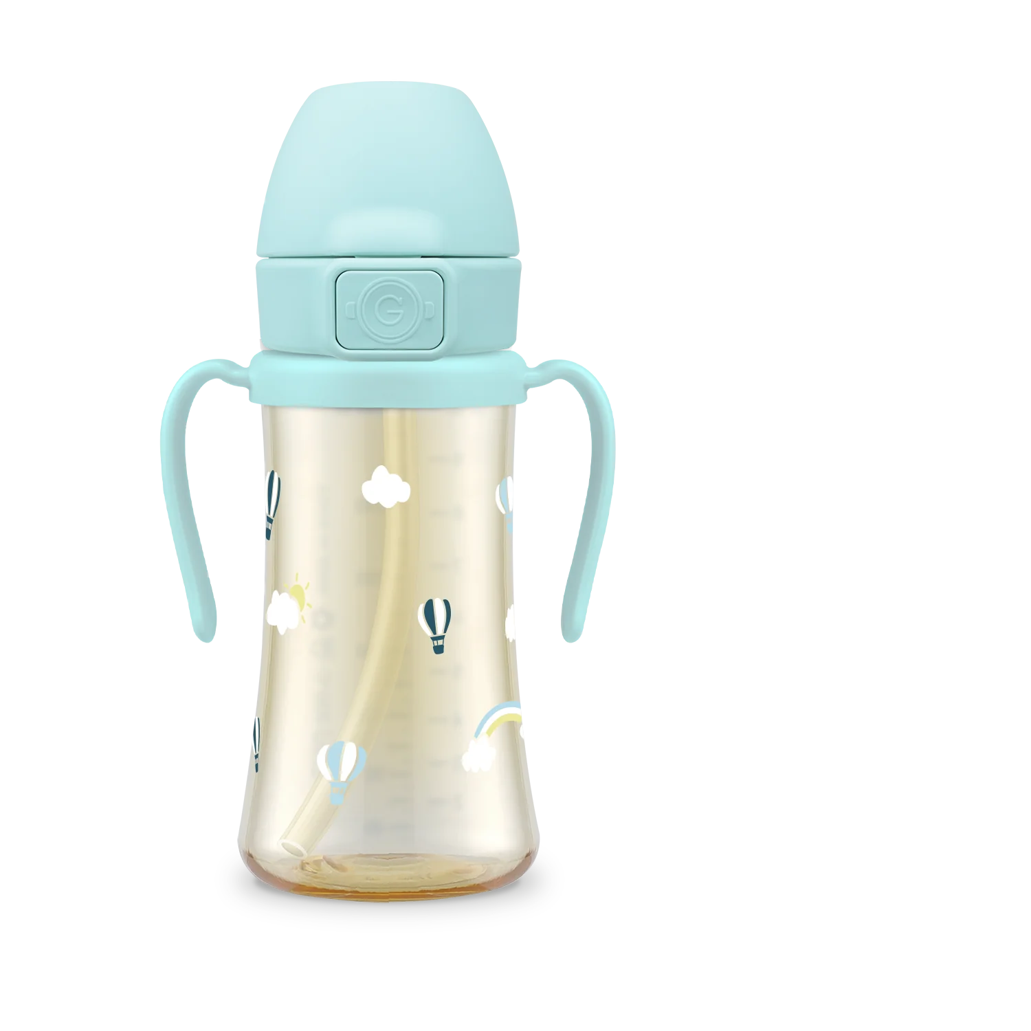 Grosmimi PPSU Sky Balloon Straw Cup With Steel Free One Touch Cap (Creamy Blue)(200mL/300mL)