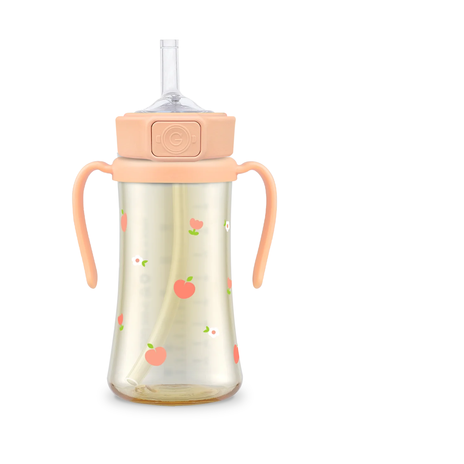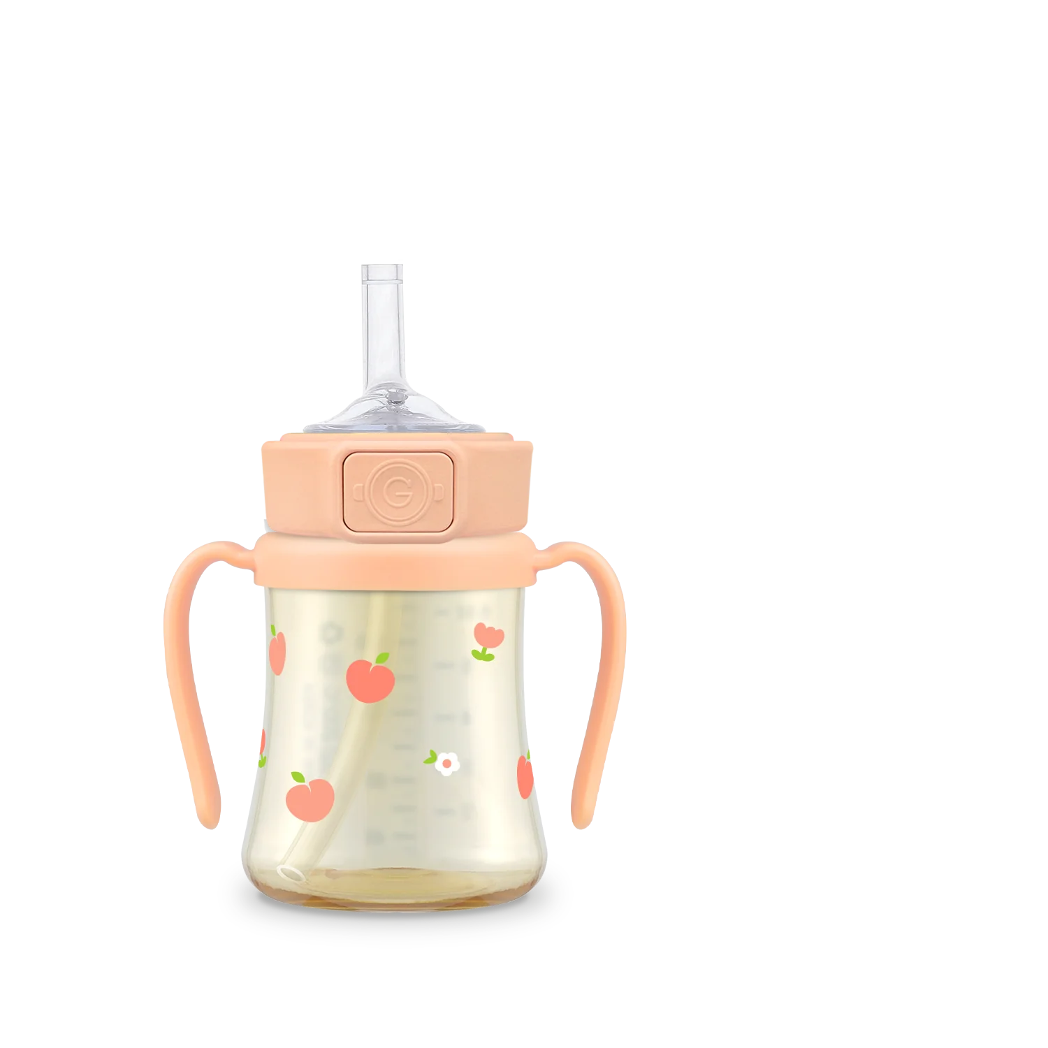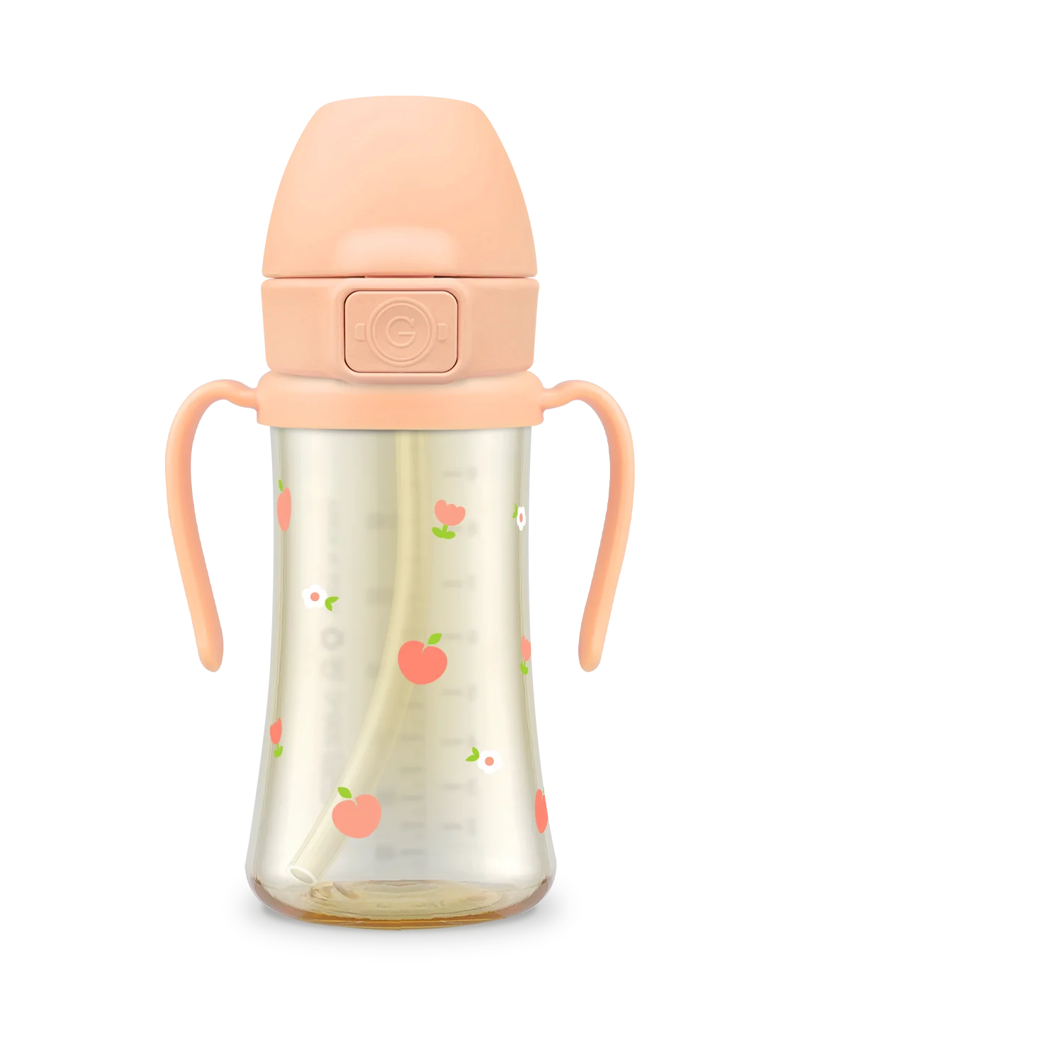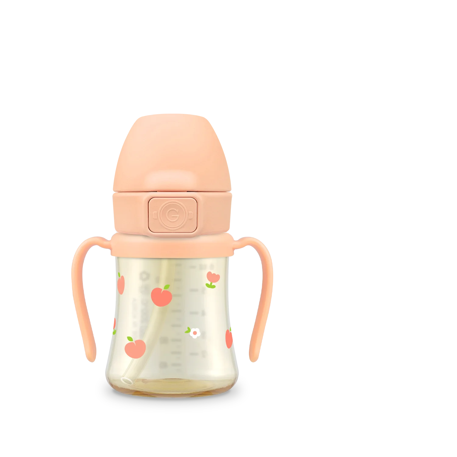 Grosmimi PPSU Peach Flower Straw Cup With Steel Free One Touch Cap (Rose Coral) (200mL/300mL)