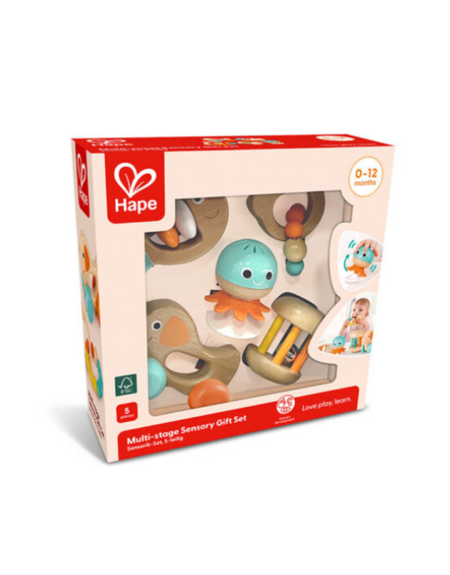Hape MULTI-STAGE SENSORY GIFT SET is backordered and will ship as soon as it is back in stock.