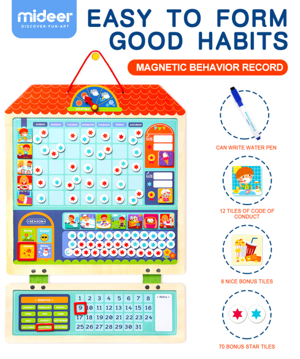 - Encourage good behavior with this wooden magnetic tracking-and-reward chart