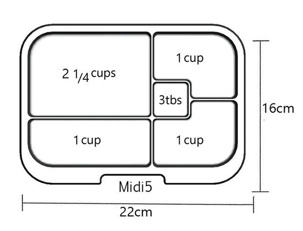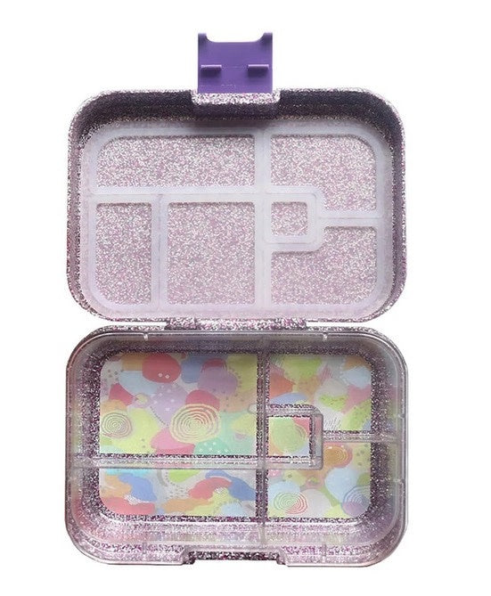 The Sparkle Purple Midi5 comes with a 6-compartment outerbox and a removable 5-Compartment tray (MIDI 5). It is also compatible with 5 other tray options for the largest variety of possible food configurations. The silicone seal system ensures that food within each compartment is kept separate, fresh, and airtight when the lid is closed - so no leaks and no mess, even with wetter foods like yogurt.