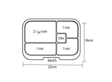 A stunning patel outer-box with contrasting latch. Perfect for a chilly winter's day with plently of room for a larger meal and tasty snacks to go! The Midi5 Pastel Collection comprises of the six compartment outerbox and the five compartment removable tray with stunning pastel artwork!