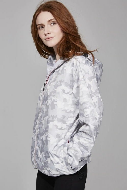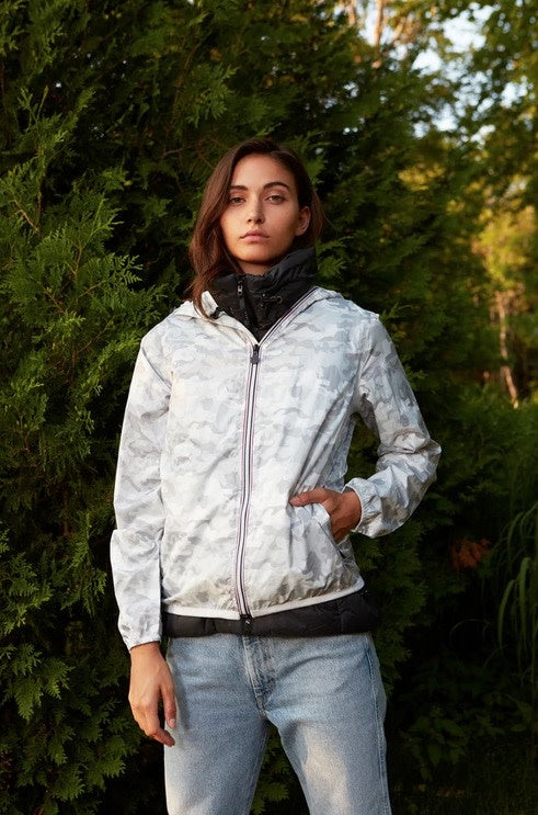 O8 Woman White Camo Full Zip Packable Rain Jacket-Sloane Print