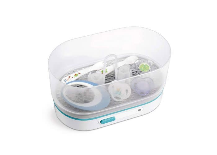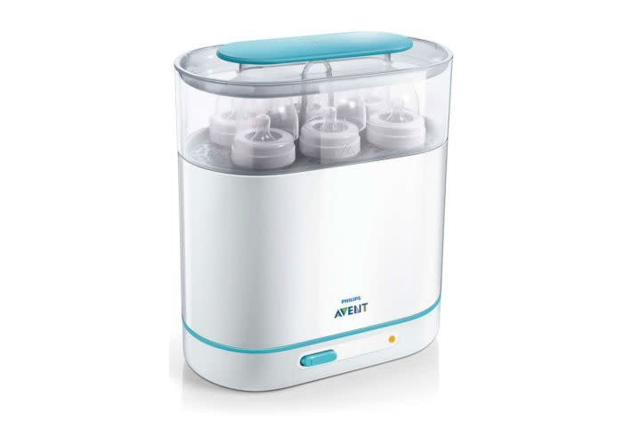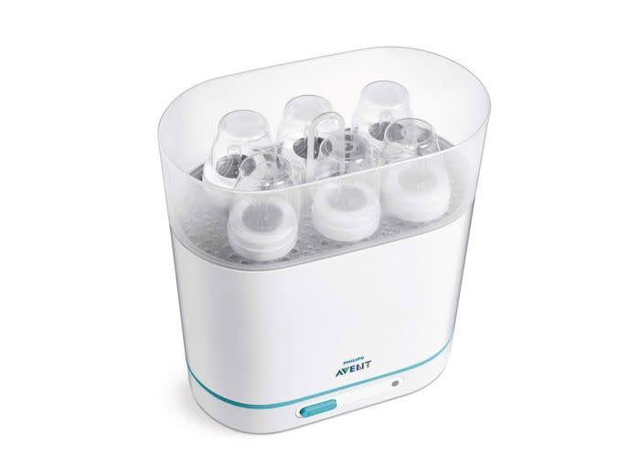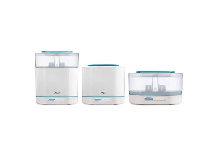 With its adjustable size, the Philips Avent 3 in 1 electric steam sterilizer takes up the least amount of kitchen space yet perfectly fits the items you want to sterilize whether it's a few small items or a full load.